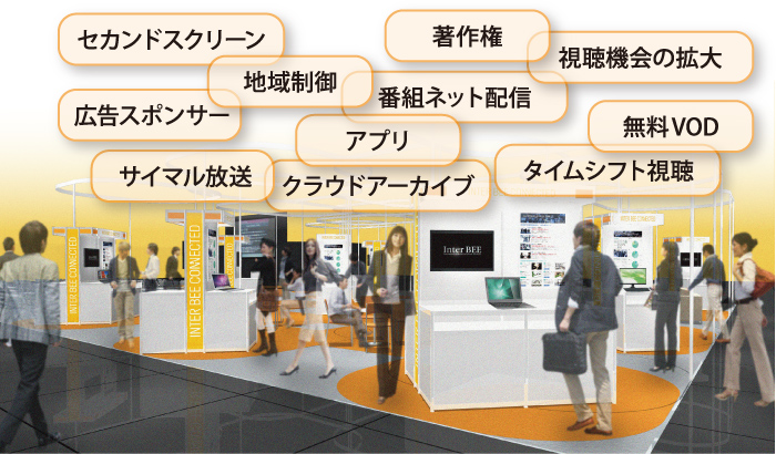 INTER BEE CONNECTED は、放送と通信の連携やインターネットを通じたメディアビジネスの可能性、コンテンツ制作インフラとしてのクラウドの利活用の進展、これからの社会システムに不可欠なデジタルコンテンツとビッグデータ活用など、映像とICT の最新動向とその進化を発信する場として展開します。