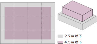 - 通路より1m セットバックした部分は、高さ4.5m まで使用可能。