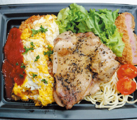 販売メニュー(予定)※価格は税込 ◆オムライス&ハーブチキン(800円) ◆ロコモコ(800円) |