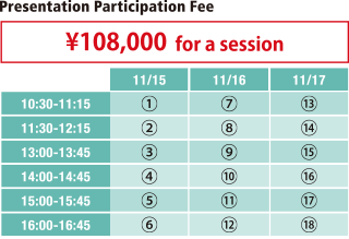 the website.We will deliver the audience data to you at a later date. - There is an upper limit of two presentation timeslots per day per company.