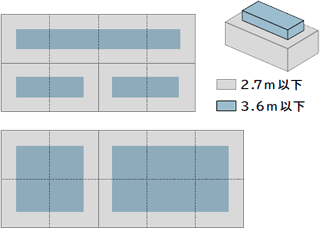通路および基礎パネルより1mセットバックした部分は、高さ3.6m まで使用可能。