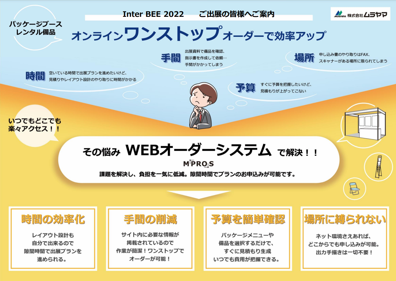 パッケージブース及び備品の選択からお申込みまで、ワンストップでご注文する事が可能です。
