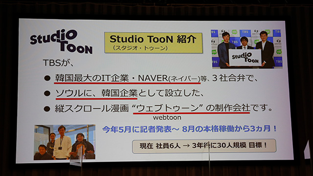 そんななか、日本のコンテンツ企業が韓国でのストーリービジネスに参入するケースも。TBSはNAVERグループ、SHINE Partnersとの合弁でウェブトゥーンの制作プロダクション「Studio TooN(スタジオ・トゥーン)」を韓国に設立した。