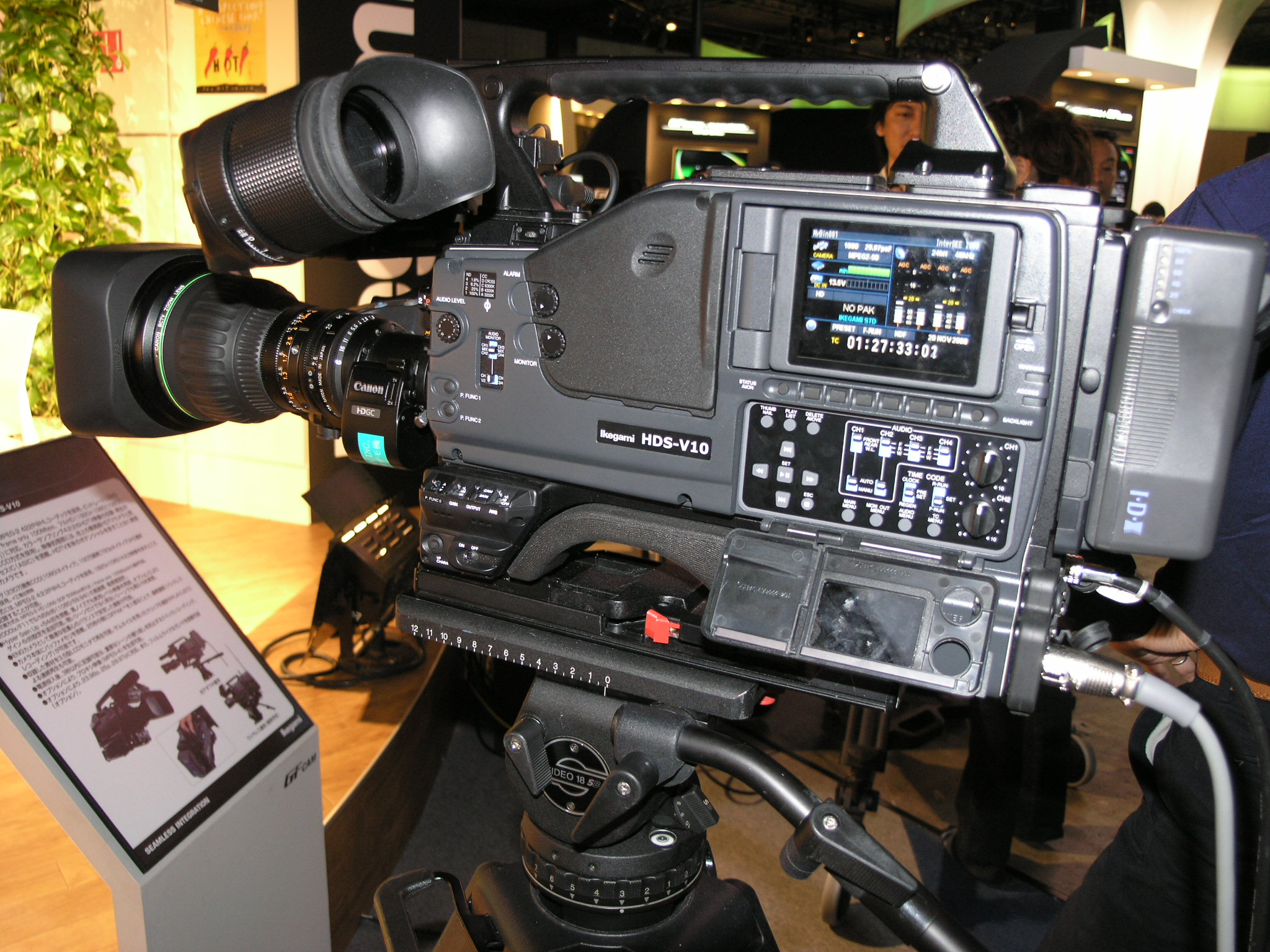 France's Thomson has been selling the Infinity DMC (digital media cam) ― a Grass Valley Brand tapeless camera ― and the newest addition to their lineup is a hybrid model that uses a removable disk and semiconductor memory as its recording media. This camera also features a 2.4 megapixel CMOS sensor, HD/SD switching, and a selection of encoding formats from MPEG-2, DV25Mbps, or JPEG2000 to match any application. One interesting thing I noticed at this year's Inter BEE was that many of the products introduced by different manufacturers are actually closely interrelated such as Panasonic's P2 HD dockable camera on display at Hitachi Kokusai Electric's booth, Sony's SxS card-equipped compact multi-format camcorder for studios and ENG applications displayed at the JVC booth, and Ikegami's GMCAM at the Thomson booth.