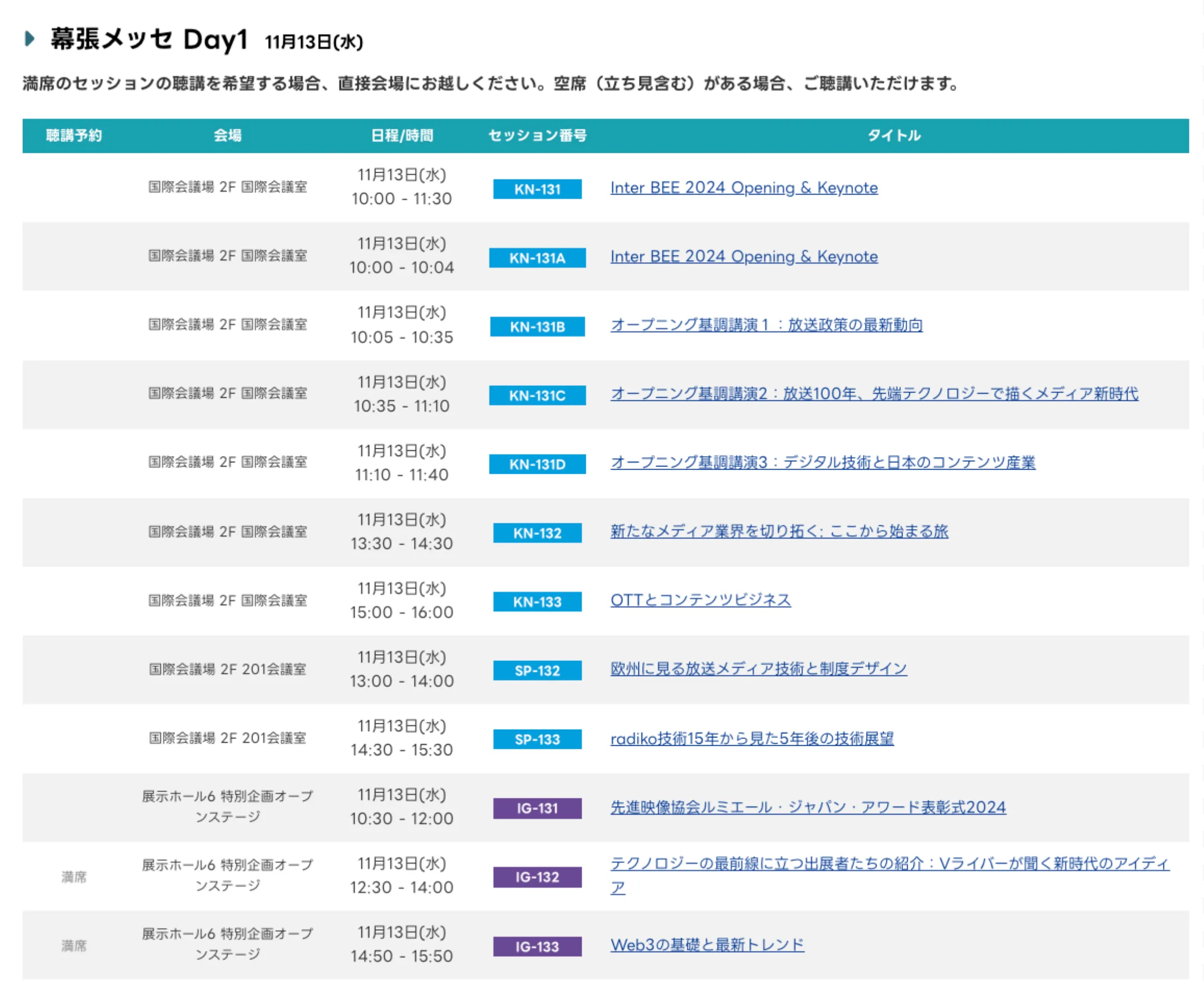 コンファレンスを聴講するには事前の聴講予約が必要になります。 こちらより聴講したいセッションをご選択の上、予約を行ってください。