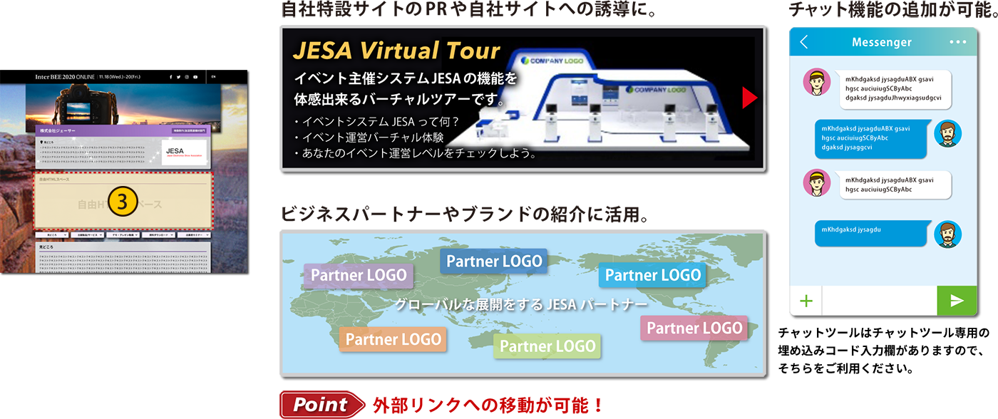出展者が独自に HTML を入力して自由な表現ができるエリアです。外部 URL への遷移も可能となります。