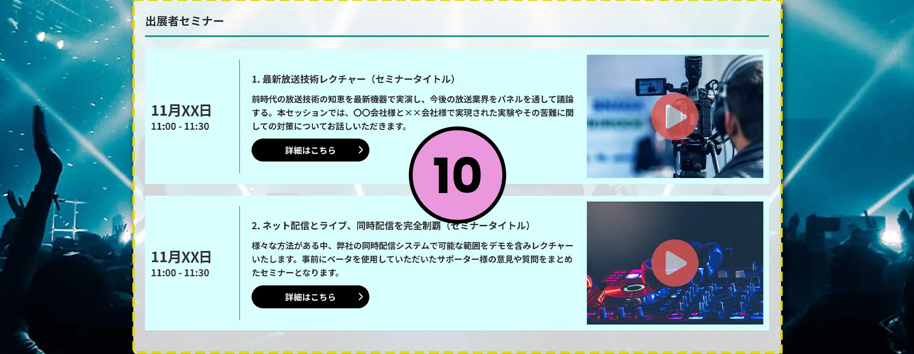 出展者が独自に HTML を入力して自由な表現ができるエリアです。外部 URL への遷移も可能となります。