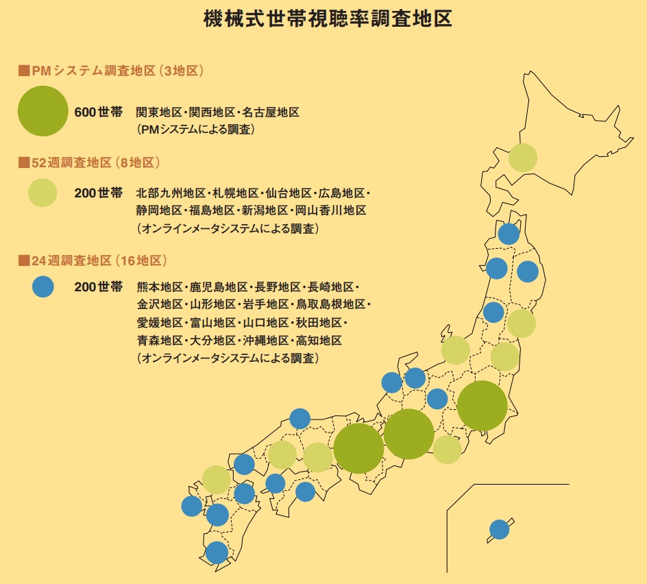 ビデオリサーチの機械式視聴率調査の分布(同社TV RATING GUIDE BOOKより)
